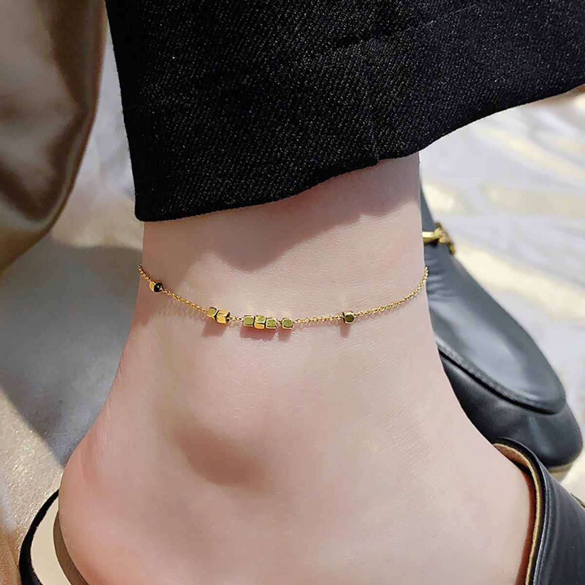 | nameOriginal | New Fashion Small Square Titanium Steel Anklet Women's Golden Simple 8 Small Bead Anklet |