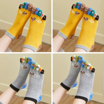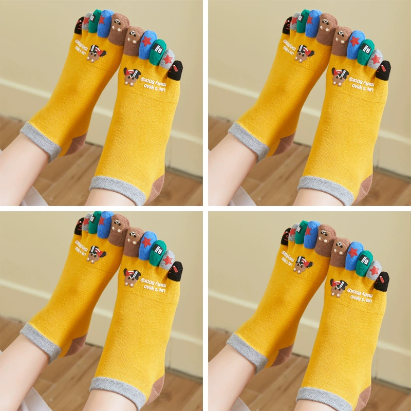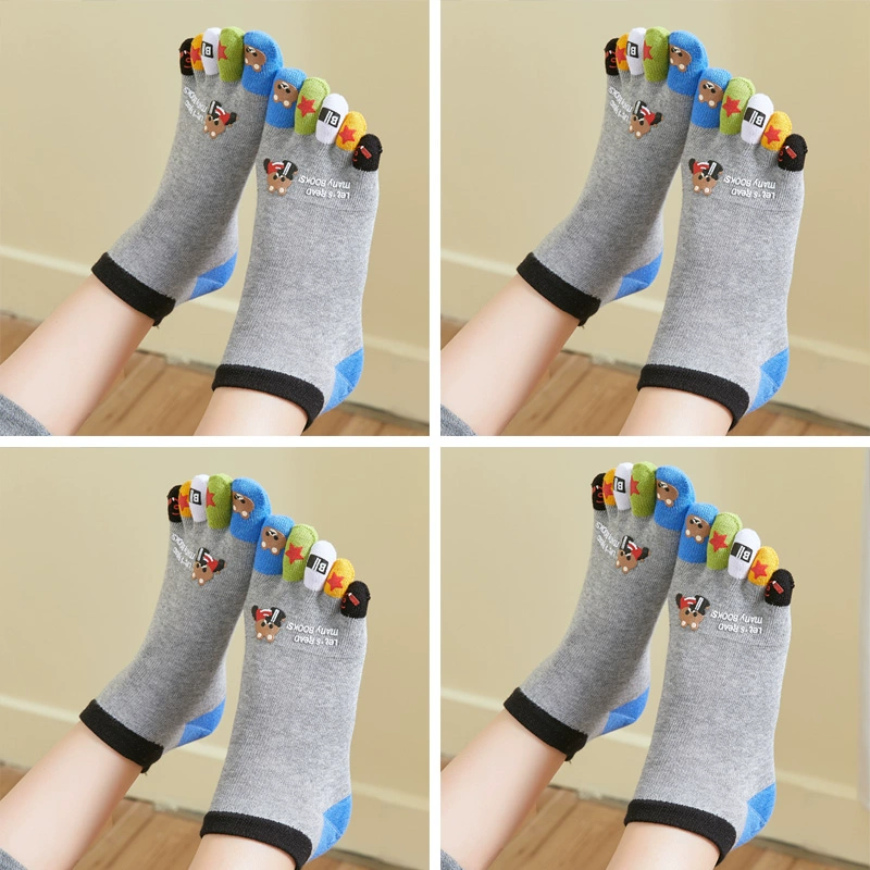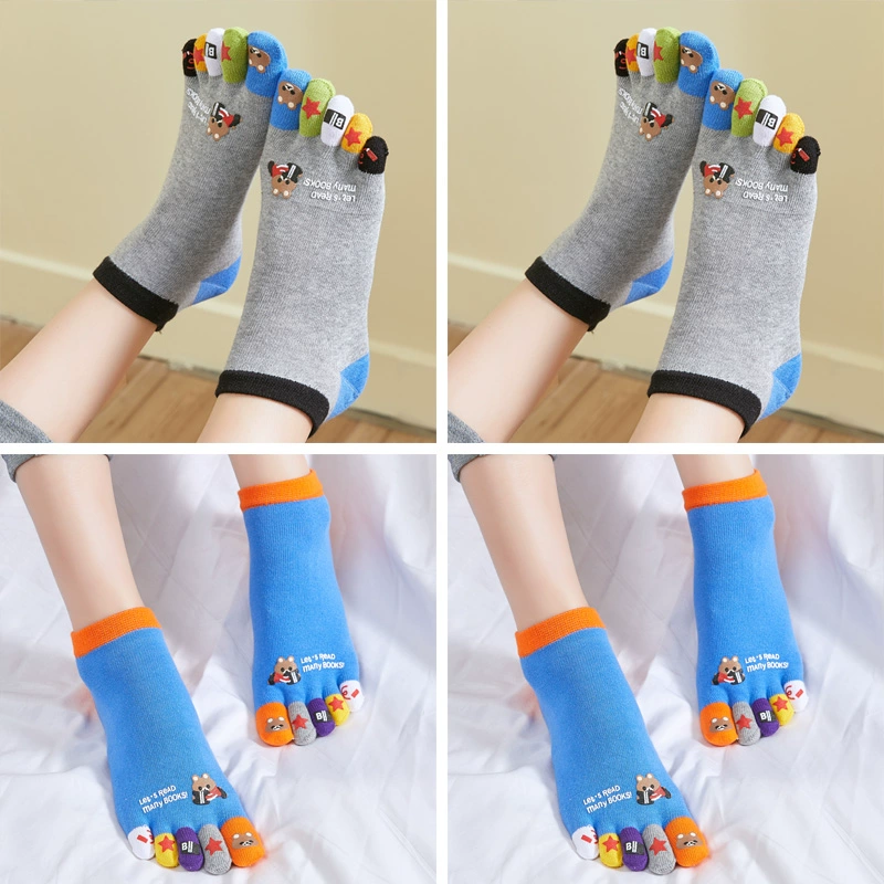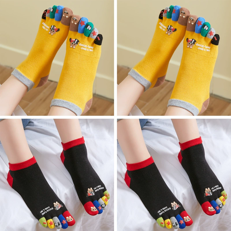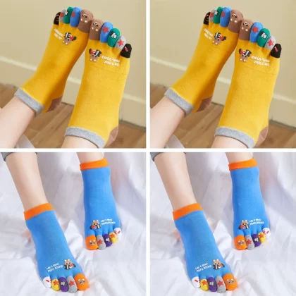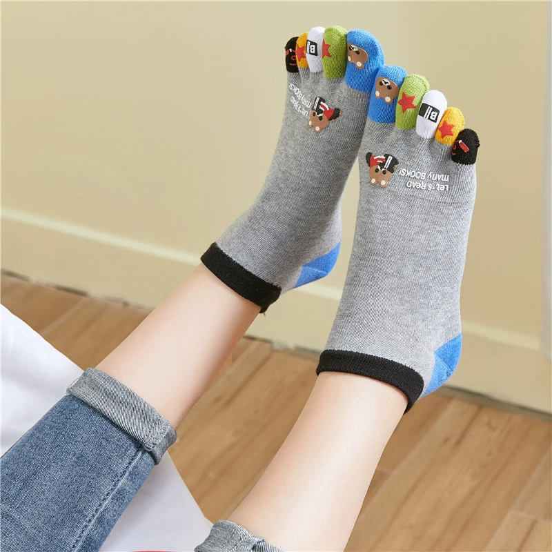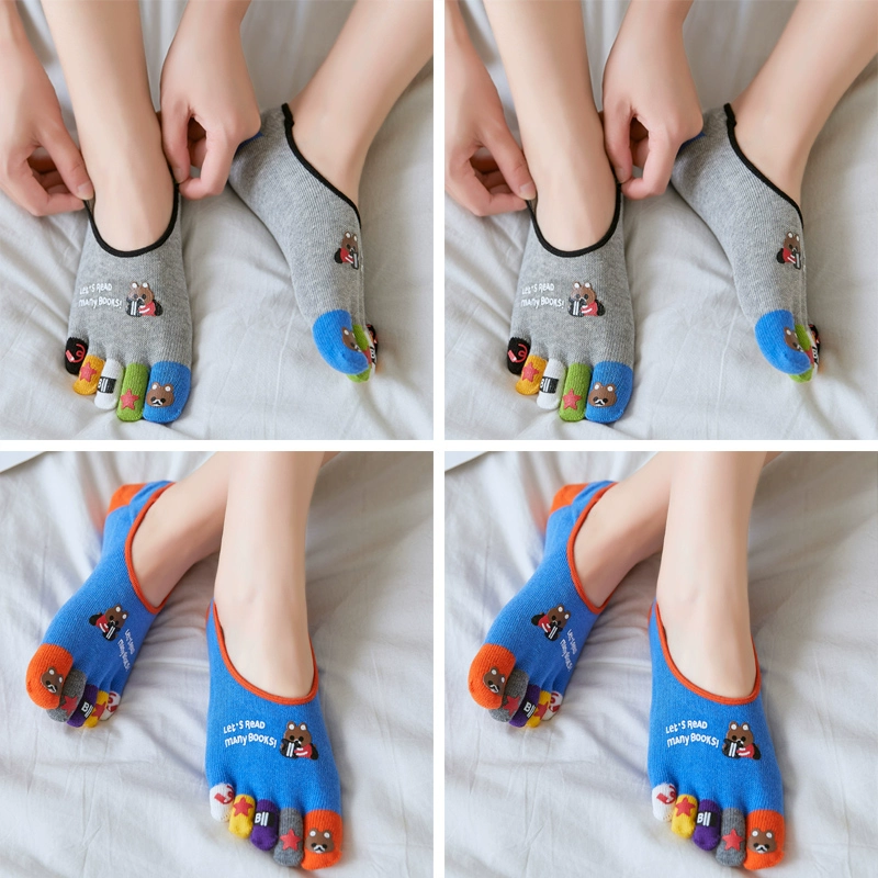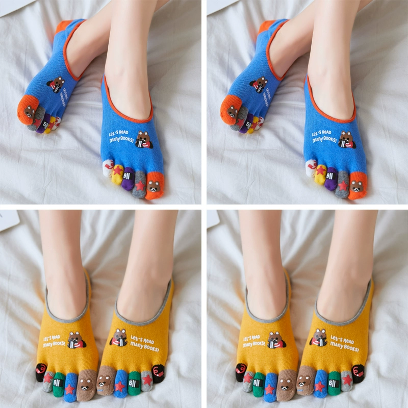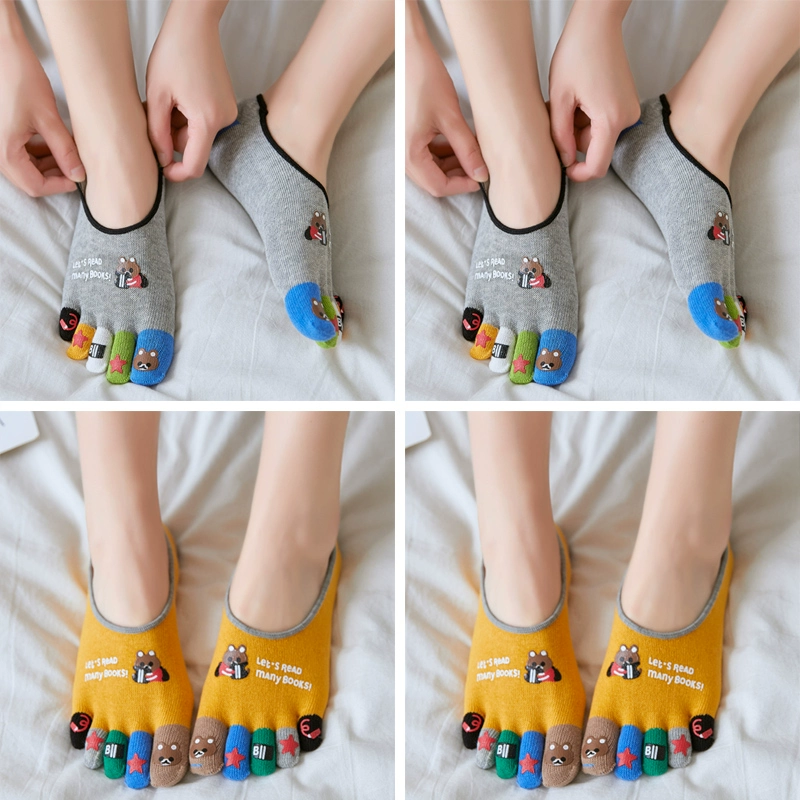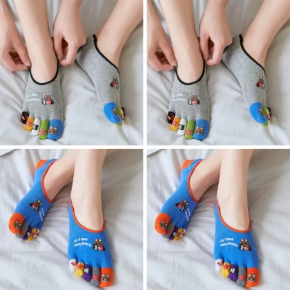 New five-finger socks boat socks for men and women in summer pure cotton cartoon deodorant thin invisible socks for couples large size split toes
