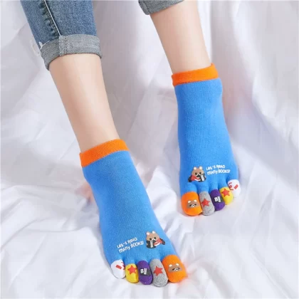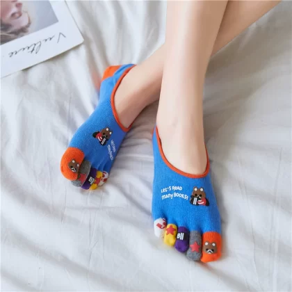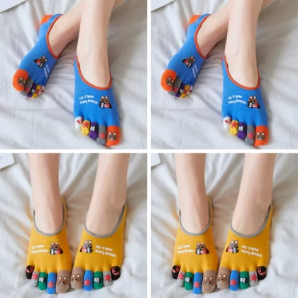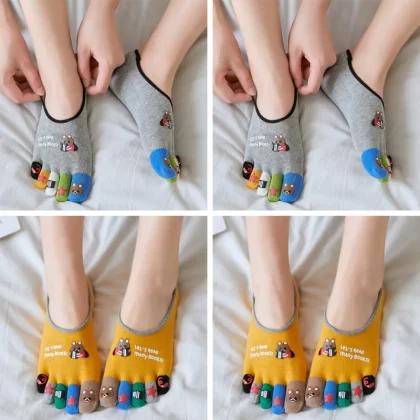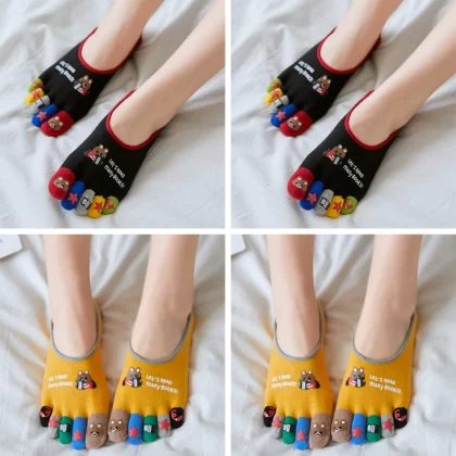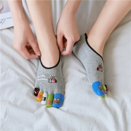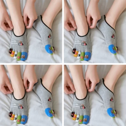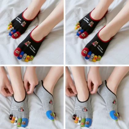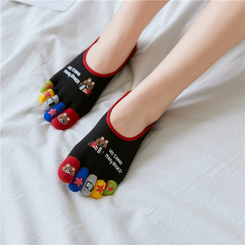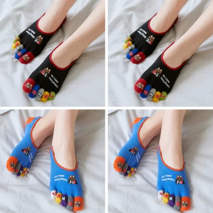 جوارب جوارب جوارب جديدة من خمسة أصابع للرجال والنساء الربيع الكرتون النقي القطن المضاد للظهور الجوارب الرقيقة غير المرئية الأزواج