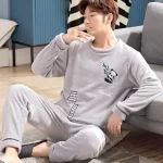 بيجامة فلانل جديدة للرجال خريف وشتاء 2024 بالإضافة إلى سترة مخملية ومرجانية سميكة بأكمام طويلة طقم ملابس منزلية دافئة