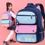 حقيبة ظهر لطيفة للفتيات جديدة متطابقة الألوان على الطراز الكوري لطلاب المدارس الابتدائية 1-3-5 درجة ذات سعة كبيرة لتخفيف العبء حقيبة مدرسية لحماية العمود الفقري