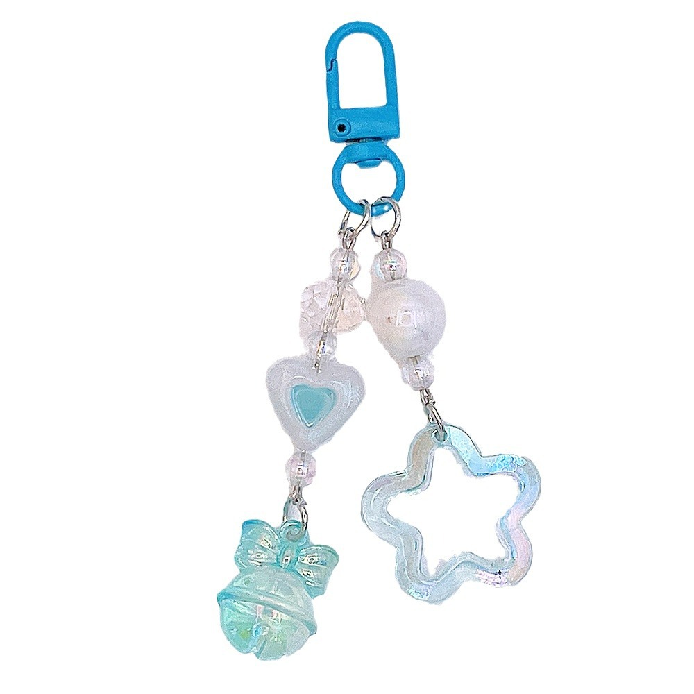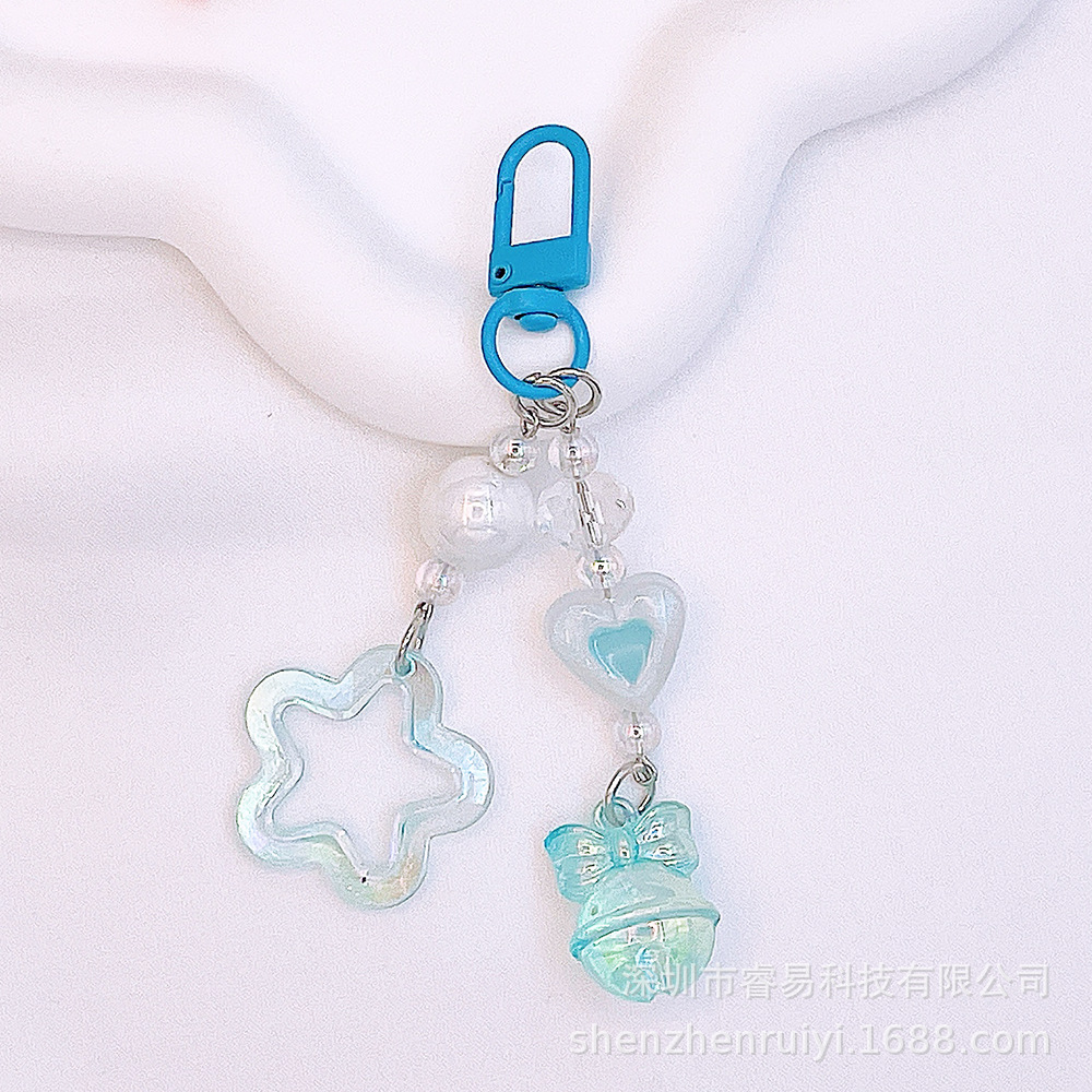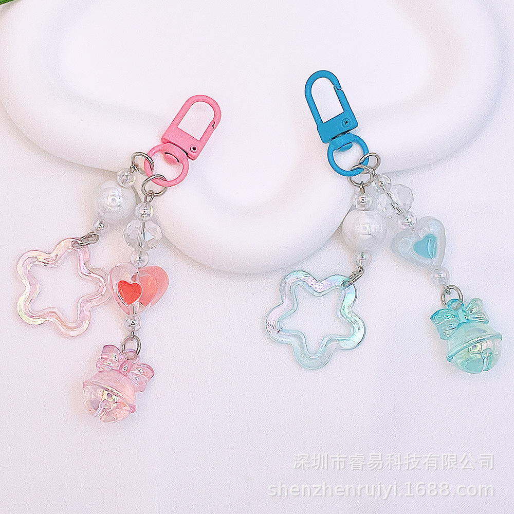 New glitter hollow acrylic five-pointed star car keychain pendant cream two-color Bell accessories bag accessories