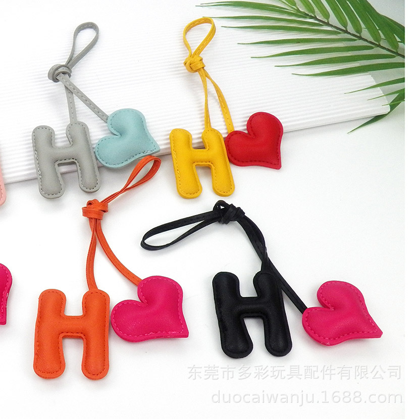 New H Home Leather Letter Peach Heart Bag Hanging Accessories Mobile Phone Shell Accessories Car Keychain Bag Hanging Accessories