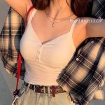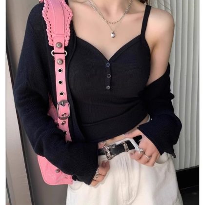 New Heart Button V-neck Camisole Women's Slim-fit Slimming Fashionable All-match Outer Wear Base Top with Chest Pad