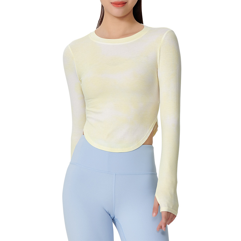 | nameOriginal | New Korean-style slim-fit stretch quick-drying fitness top tight side slit slimming tie-dyed rib yoga clothes long sleeve |