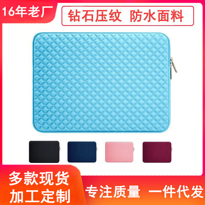 New laptop bag diamond embossed plus velvet drop-proof liner bag high-grade flat 16 inch cross-border wholesale