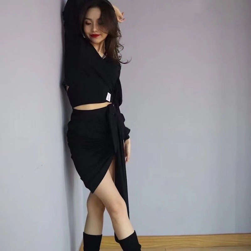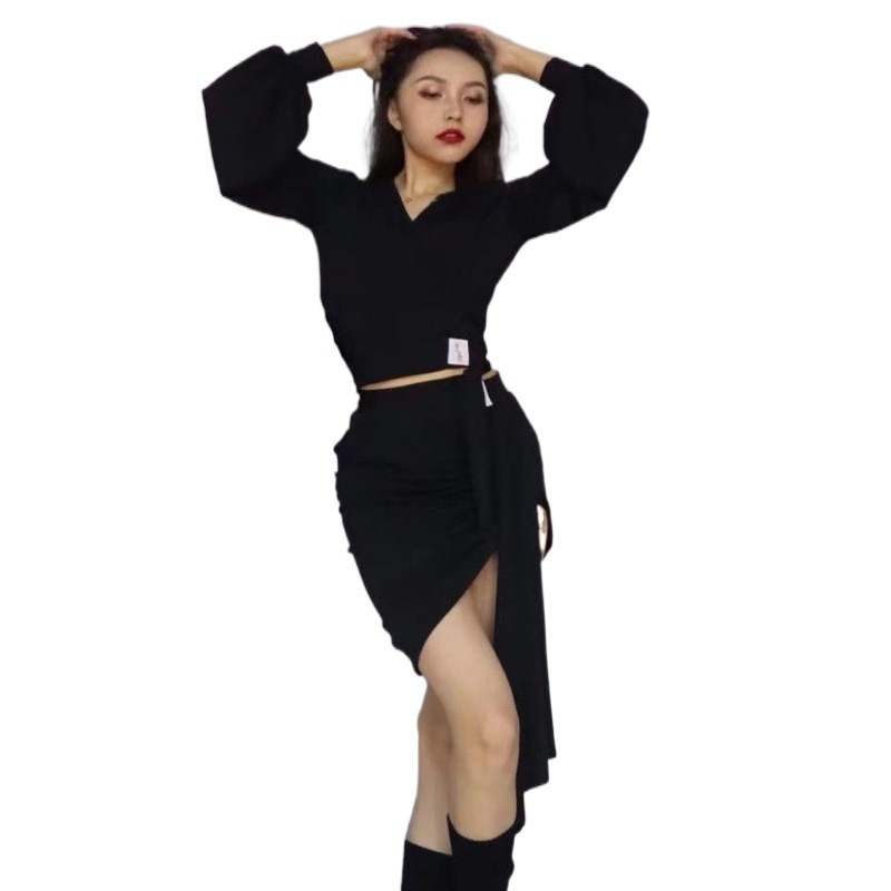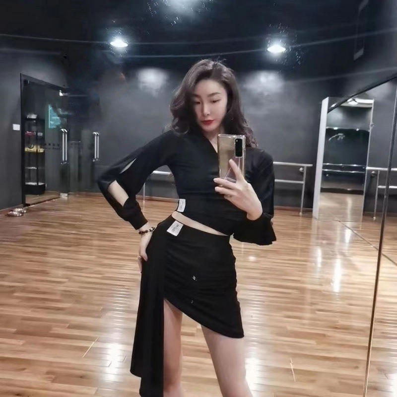 | nameOriginal | New Latin Dance Dress Training Dress Long Sleeve Collar Puff Sleeve Hollow Top Hip Strap Skirt Suit Cross Border |