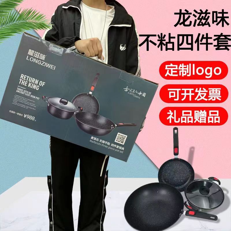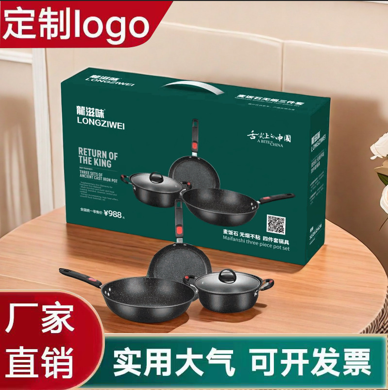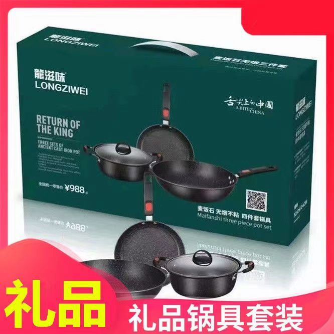 | nameOriginal | New Maifan Stone Wok Three-piece Set Thickened Non-stick Pan Flat Bottom Iron Pot Set Pot Activity Gift Pot |