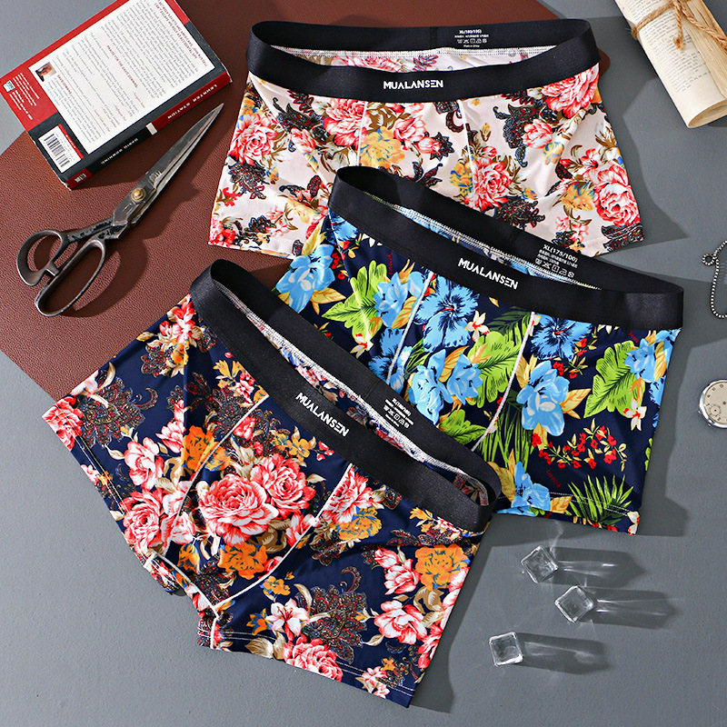 New men's boxer shorts ice silk printed comfortable boxers trendy popular thin mid-waist sexy pants