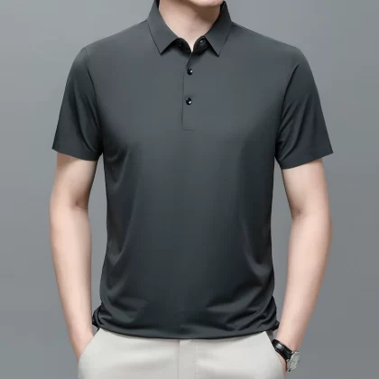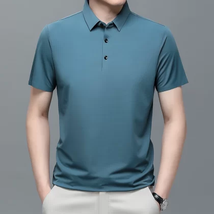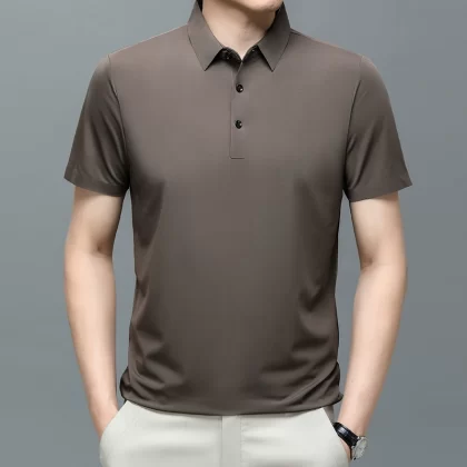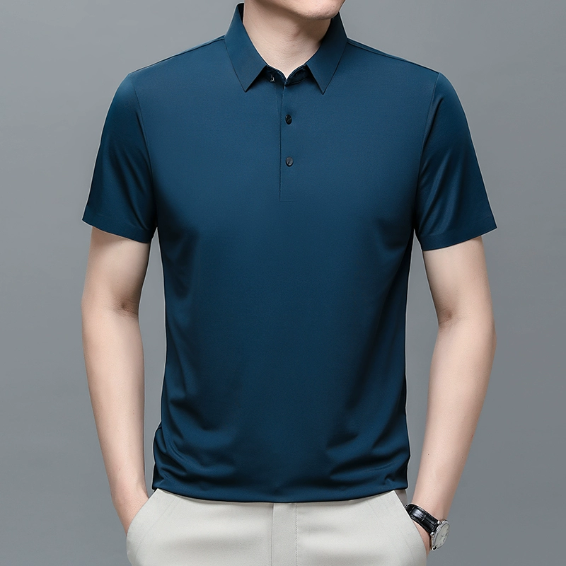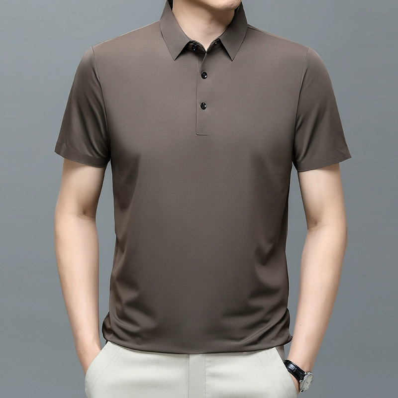 | nameOriginal | New men's short-sleeved T-shirt mulberry ice silk polo shirt summer lapel half-sleeved ice silk solid color casual T-shirt for men |