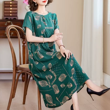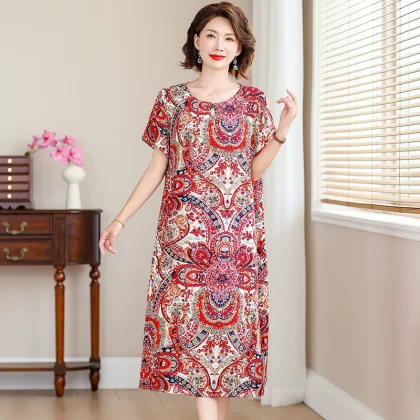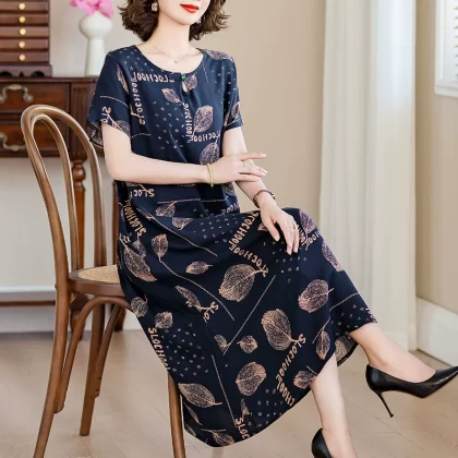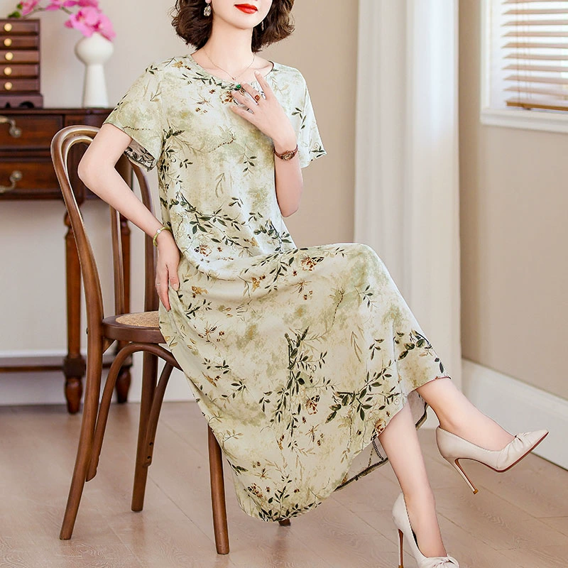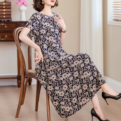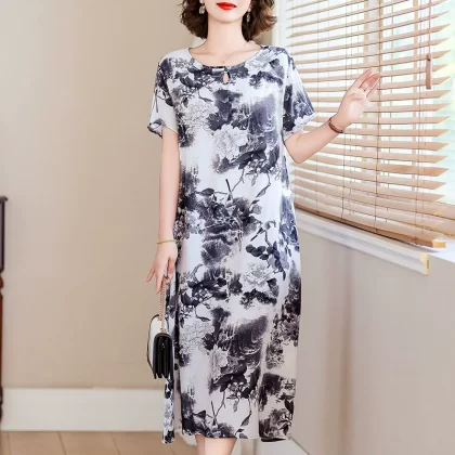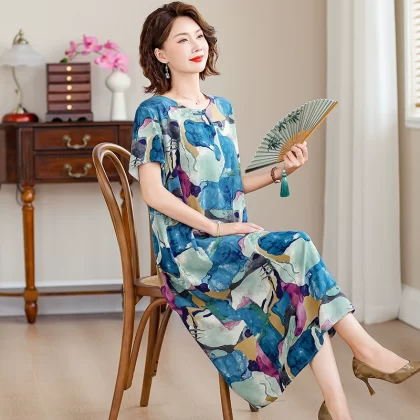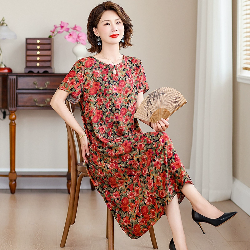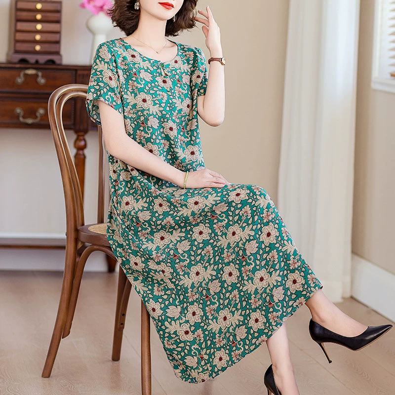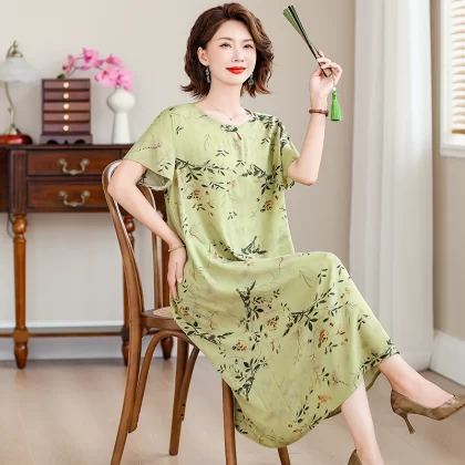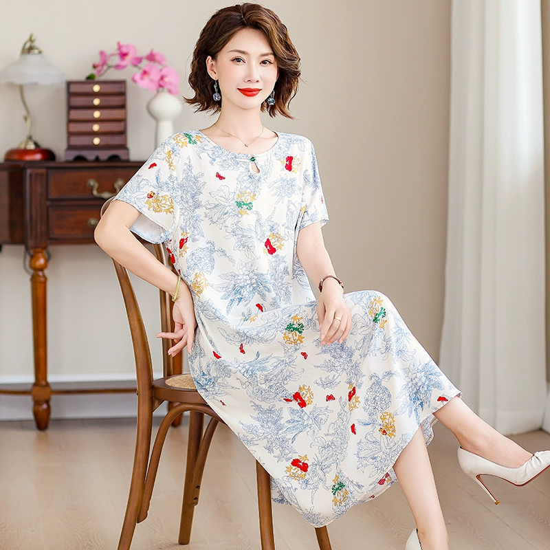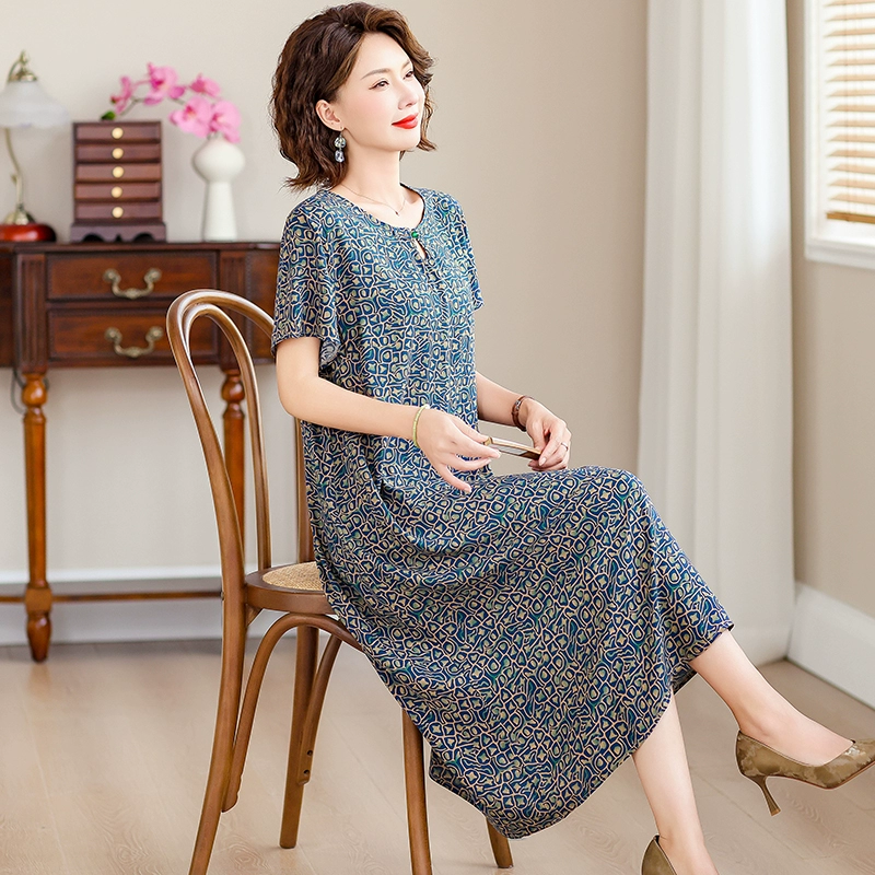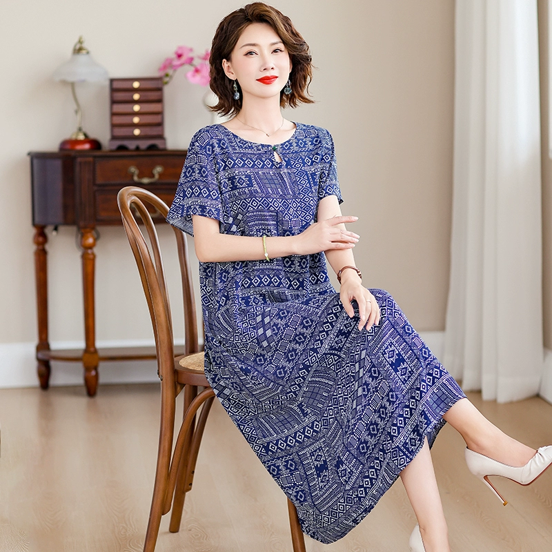 | nameOriginal | New middle-aged mother's cotton silk dress women's summer middle-aged and elderly high-end fashionable and rich lady's artificial cotton skirt |