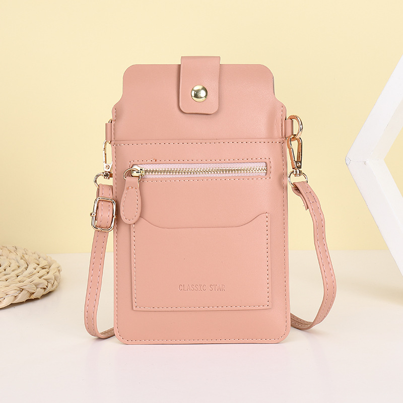 New mobile phone bag for women Korean style solid color simple student thin multi-functional zipper shoulder messenger bag for women