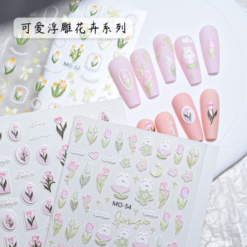 nameOriginal | New Nail Art Stickers ins Japanese Style Internet Celebrity Same Style Blue Tulip Hot Edge Fresh Adhesive Nail Decal |