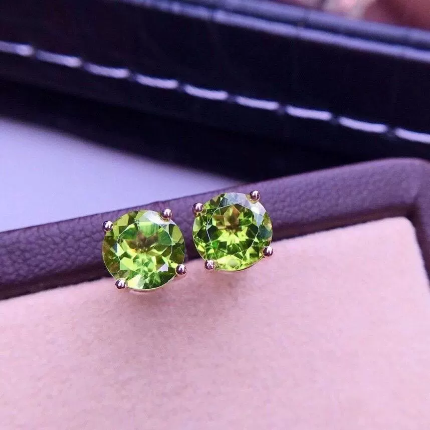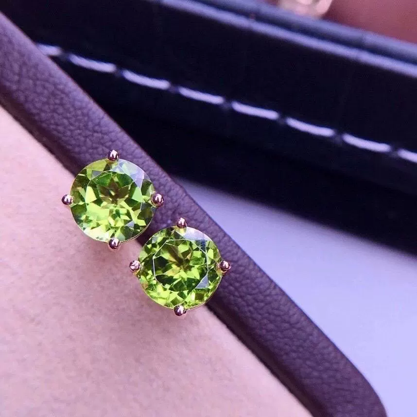 | nameOriginal | New natural peridot earrings spring color size round 6*6mm 925 silver gold-plated precision four-claw inlay |