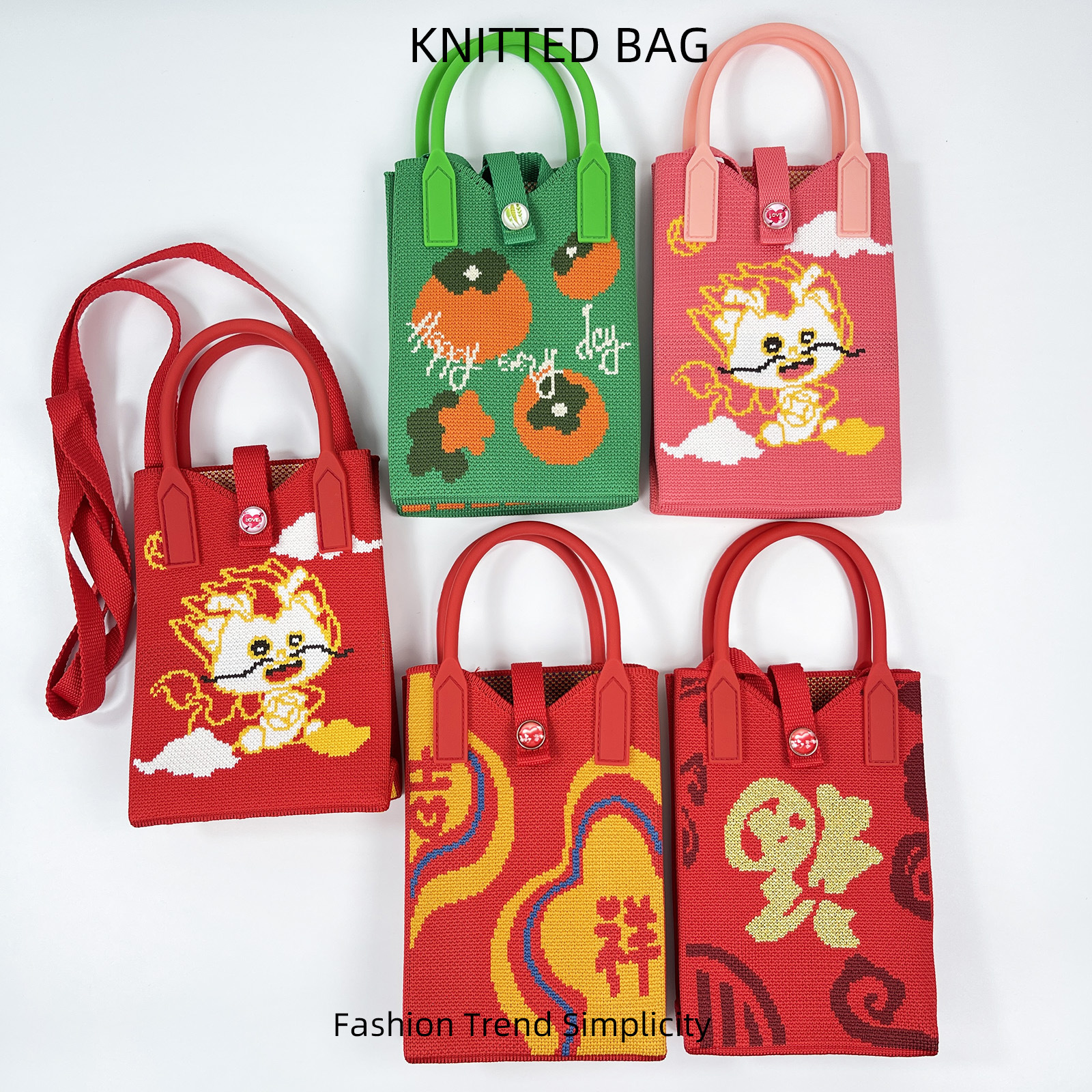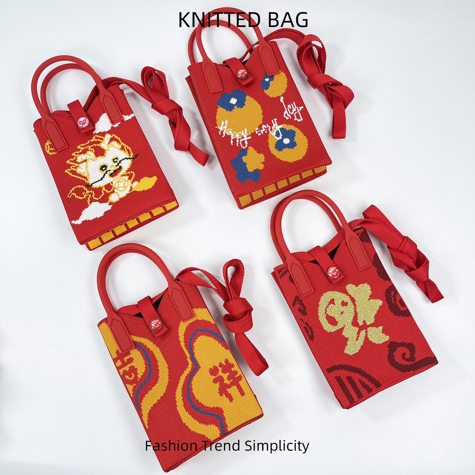 | nameOriginal | New Persimmon Happy Red Festive Cartoon Knitted Mobile Phone Bag Student Mini Crossbody Coin Purse Small Square Bag for Women |