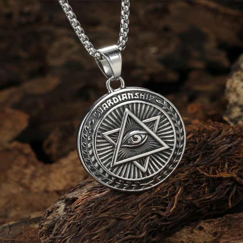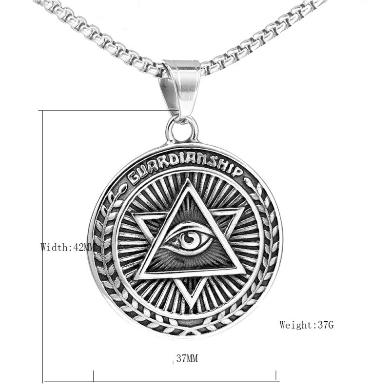 | nameOriginal | New personalized retro stainless steel pendant Masonic all-knowing eye six-pointed star pendant men's round necklace |