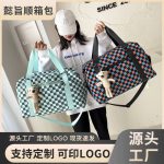New Plaid Large Capacity Travel Bag Fashion Contrast Color Portable Crossbody Fitness Bag Sleeve Rod Luggage Bag