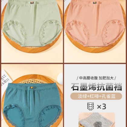 | nameOriginal | New plus size underwear women's graphene antibacterial mid-high waist belly contracting hip lifting breathable chubby girl triangle shorts head |