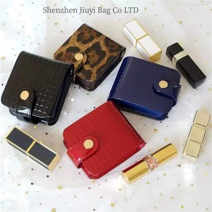 New PU Leather Lipstick Storage Bag Mini Lipstick Lipstick Storage Bag with Mirror Lip Gloss Leather Cover Lipstick