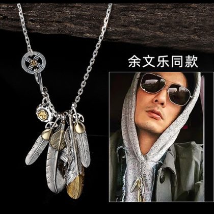New Retro Takahashi Style Feather Necklace Trendy Fashion Women Men's Woolen Chain Series Jewelry
