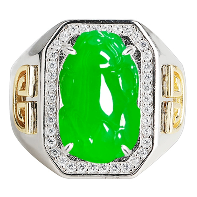 | nameOriginal | New s925 sterling silver ring empty support diy inlaid jade jade Pixiu gemstone ring face men and women ring support 10*16 |