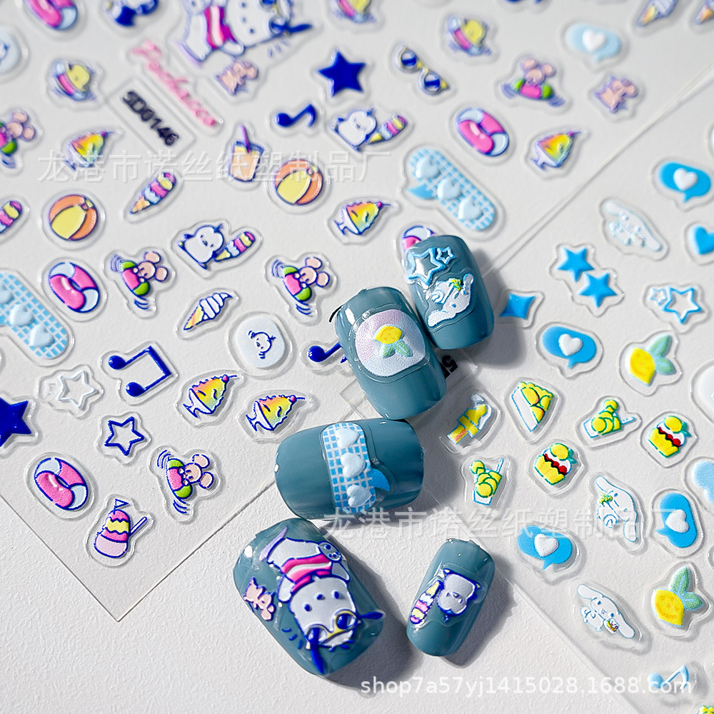 | nameOriginal | New Sanrio children's cute cartoon 5D relief three-dimensional nail stickers kulomi adhesive nail stickers wholesale |