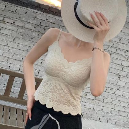 New sexy lace back fixed Cup wear-free bra soft and comfortable inner wear outer wear camisole underwear for women