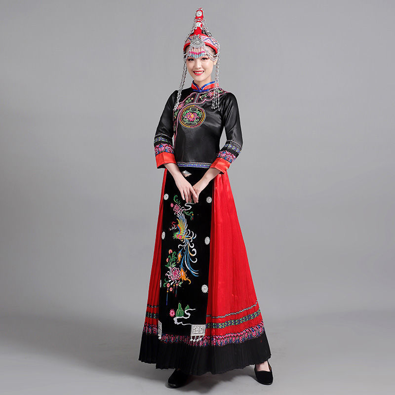جديد إنها الأقليات العرقية زي المرأة فستان الزفاف التقليدي فينيكس تاج مطرز زي فستان طويل زي الأداء