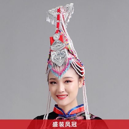 New She Ethnic Minority Costume Women's Wedding Dress Traditional Phoenix Crown Embroidered Costume Long Dress Performance Costume