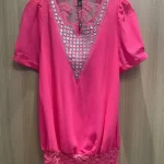 | nameOriginal | New short-sleeved chiffon shirt for women V-neck lace beautiful back solid color sexy hollow foreign style mesh breathable temperament studs |