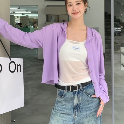 | nameOriginal | New Spring and Summer New Button Knitted Sweater Women's Loose All-match Slub Cotton Cardigan Outer Wear Long Sleeve Sunscreen Hood Empty |