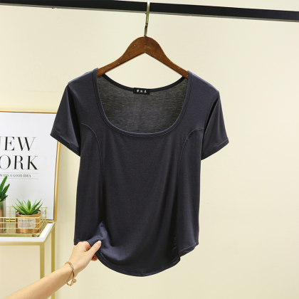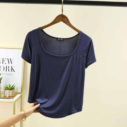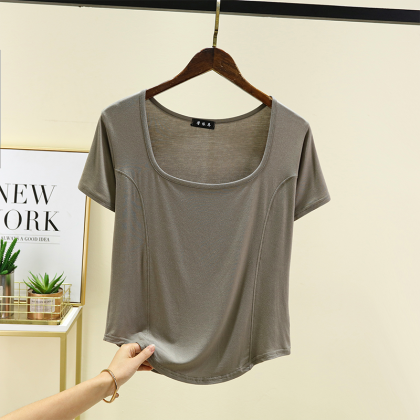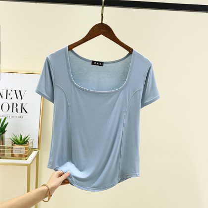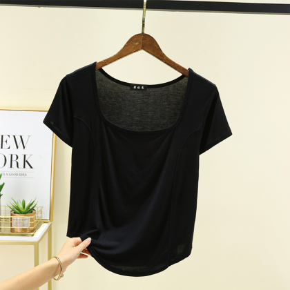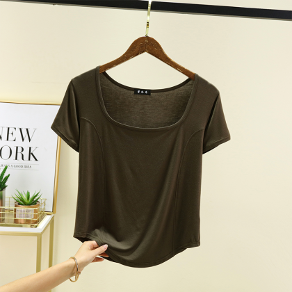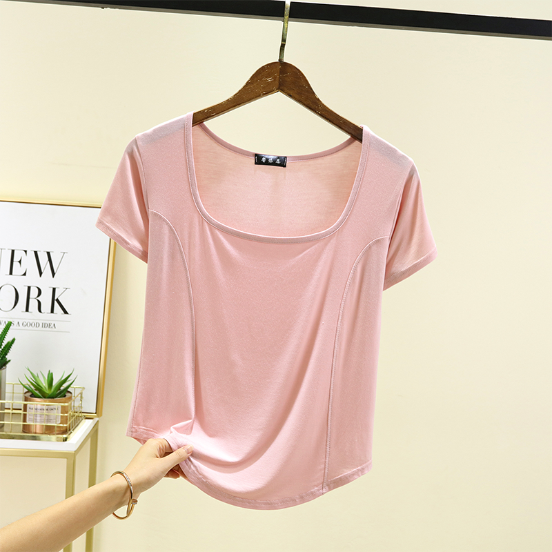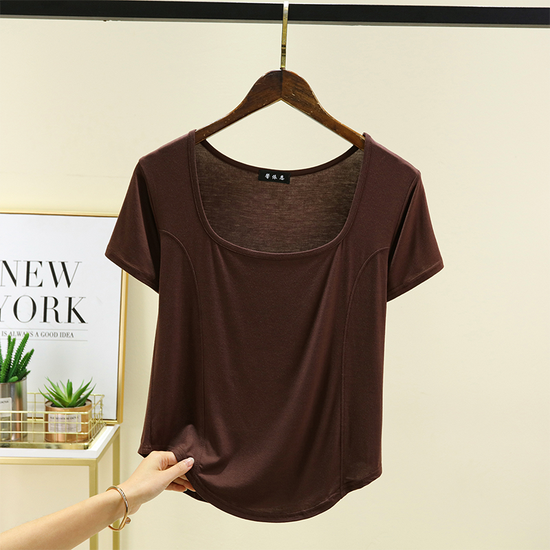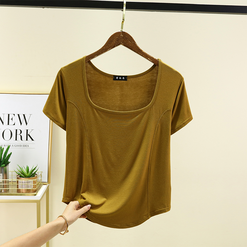 | nameOriginal | New square-neck front-piece short-sleeved T-shirt for women in summer thin modal with arc hem half-sleeved top worn outside |