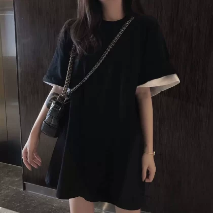 | nameOriginal | New style color block short sleeve loose 200 catties top summer wear |