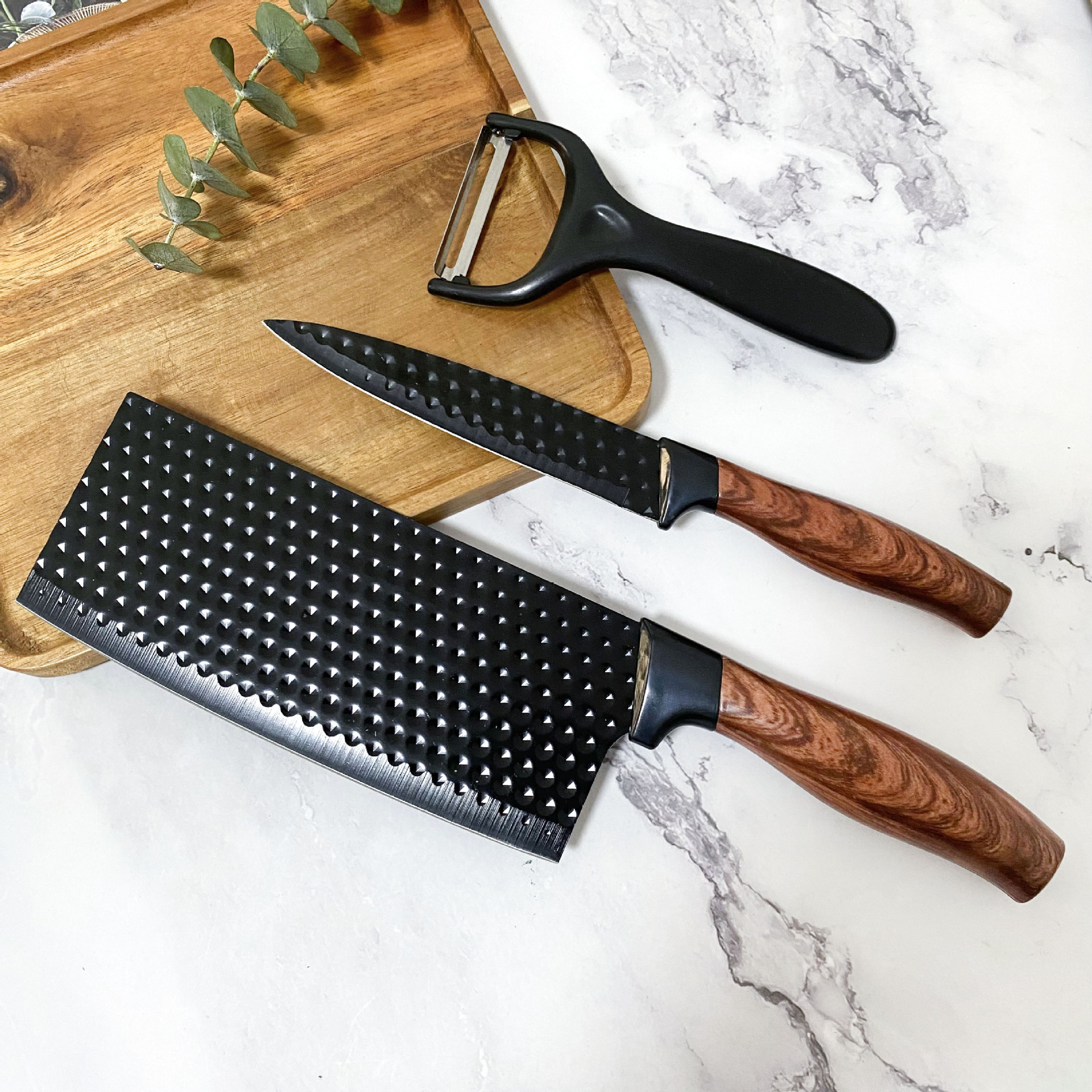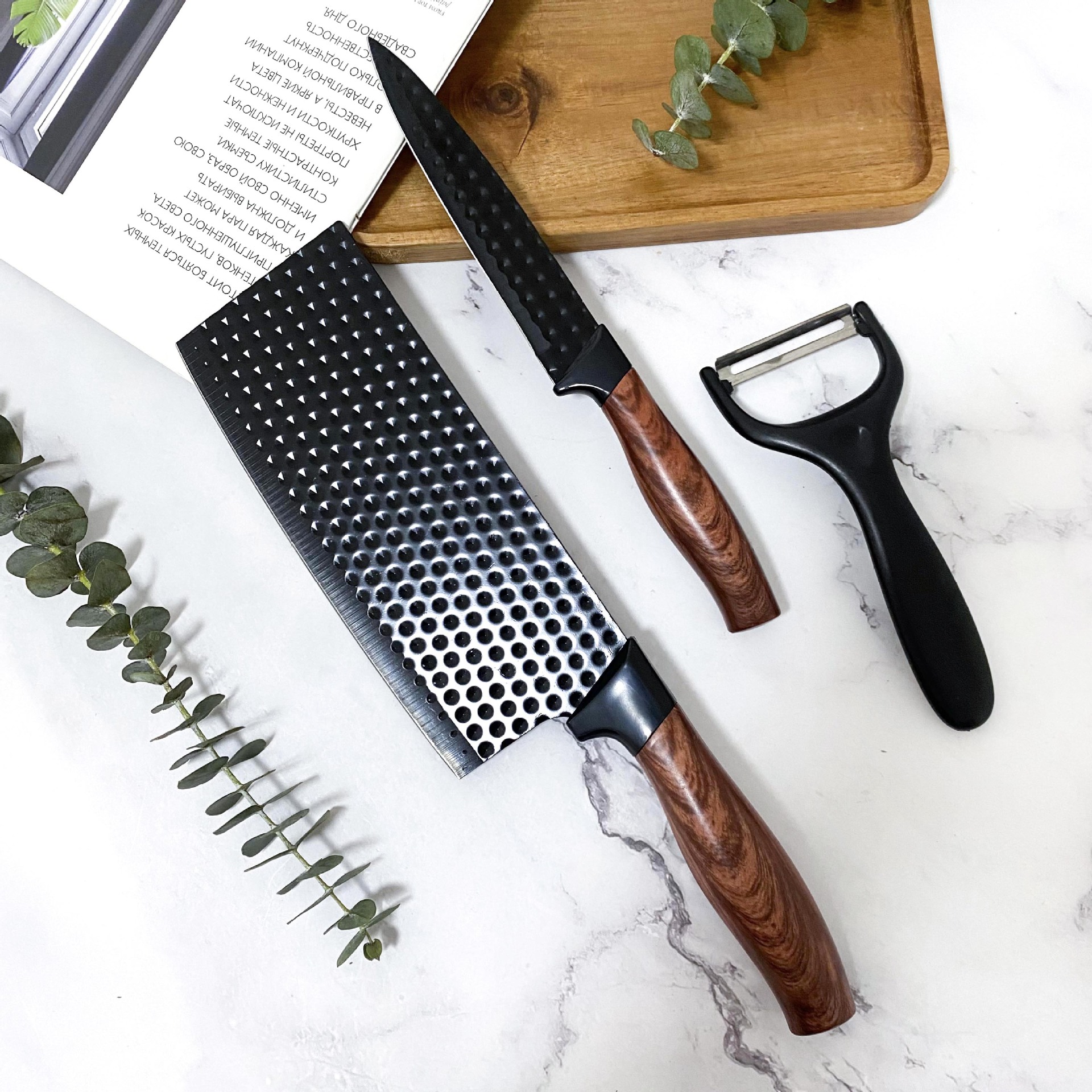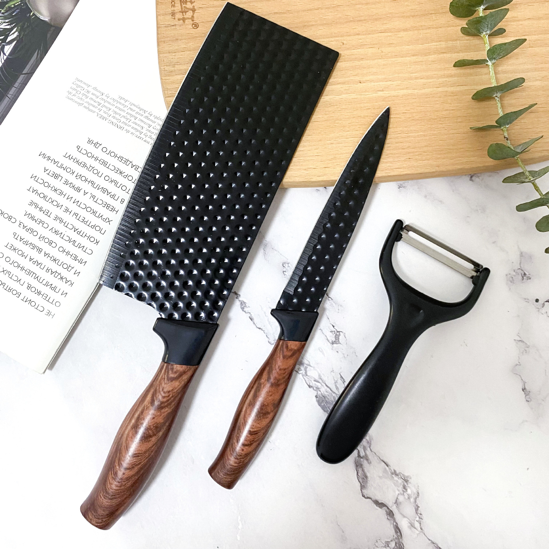 | nameOriginal | New style factory direct stainless steel black blade non-stick coating three-piece set peeling knife kitchen knife fruit knife melon planer combination |