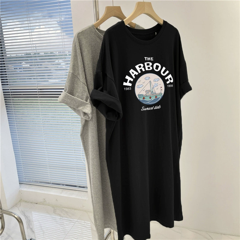 New style pure cotton summer loose short-sleeved simple T-shirt dress