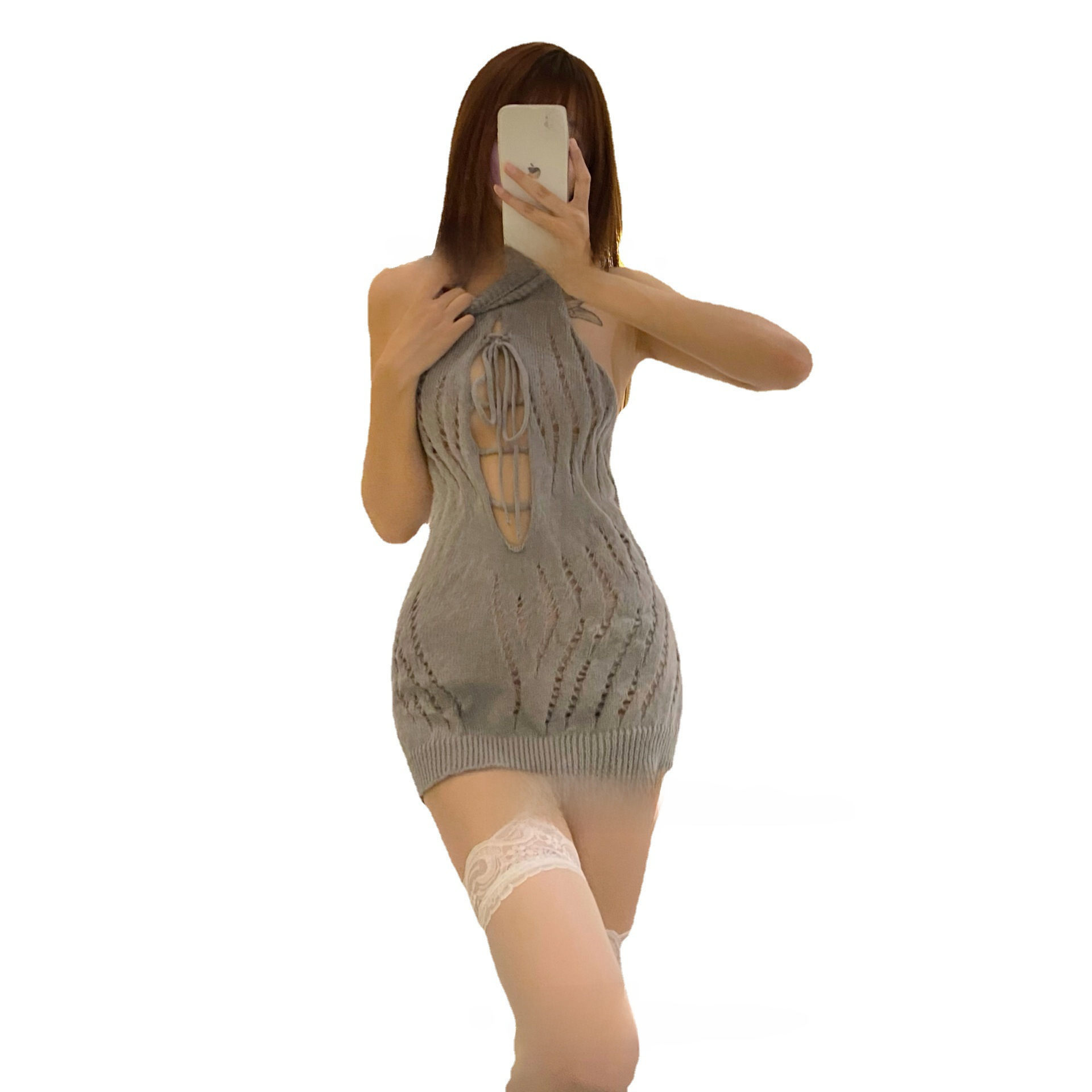 | nameOriginal | New Style Sexy Underwear Working Mouth Grey Knitted Sweater Turtleneck Backless Leaky Hip Bag Skirt Nightdress New Year Dress for Women |