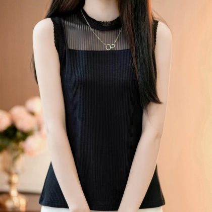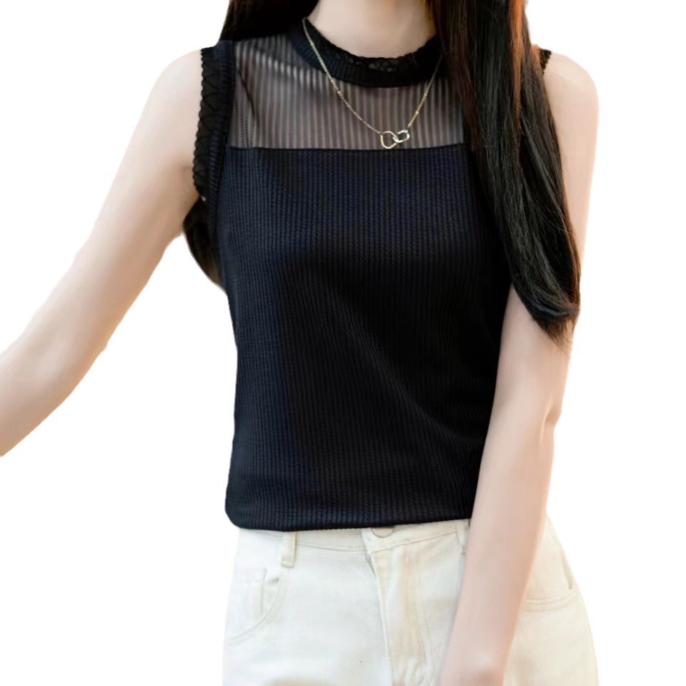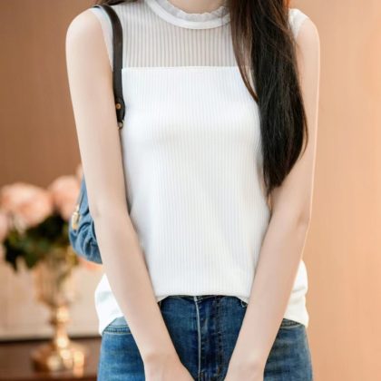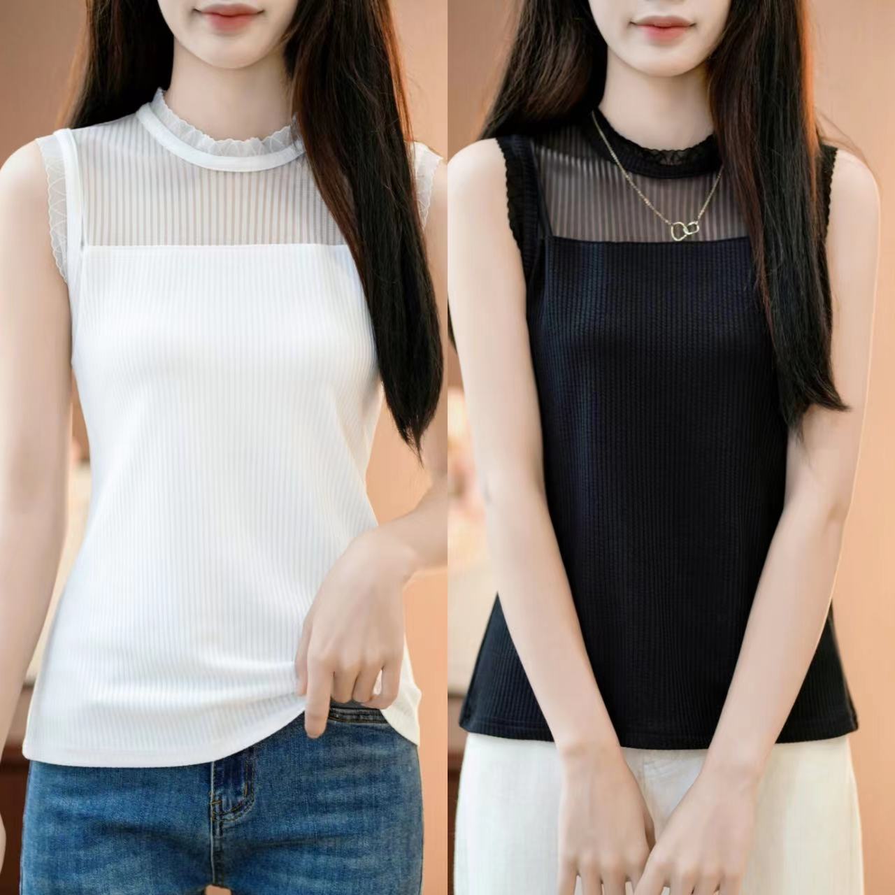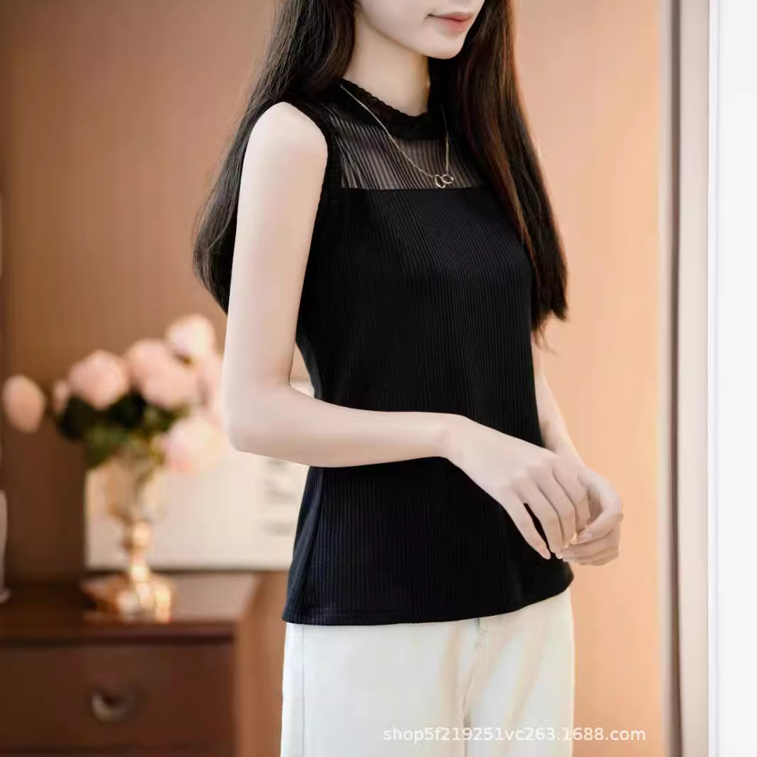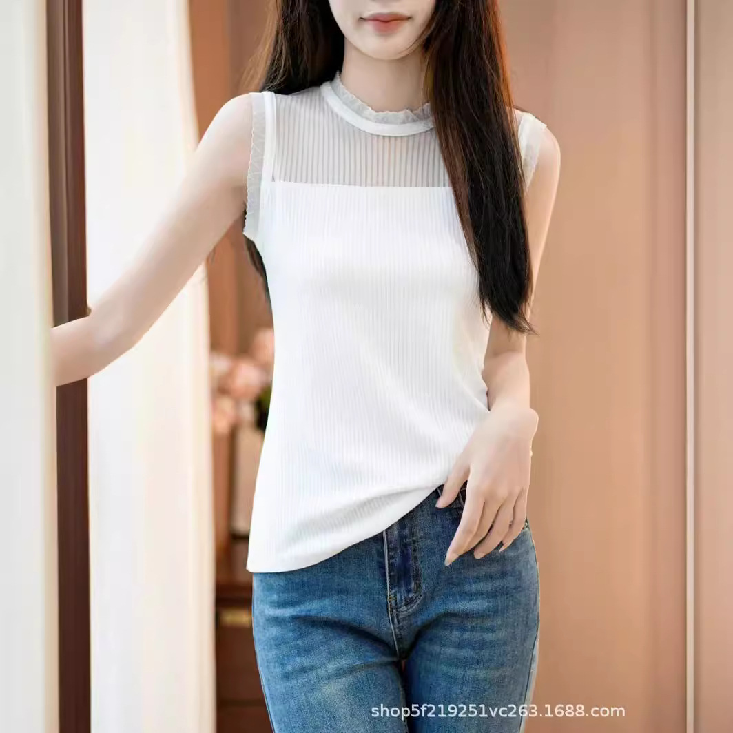 New Style Spring/Summer 2023 Inner Wearing Vest French Top Ear Lace Base Shirt Knitted Sling Back