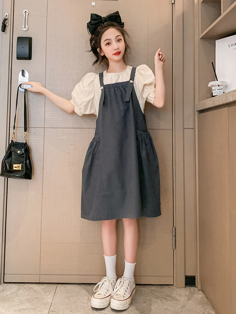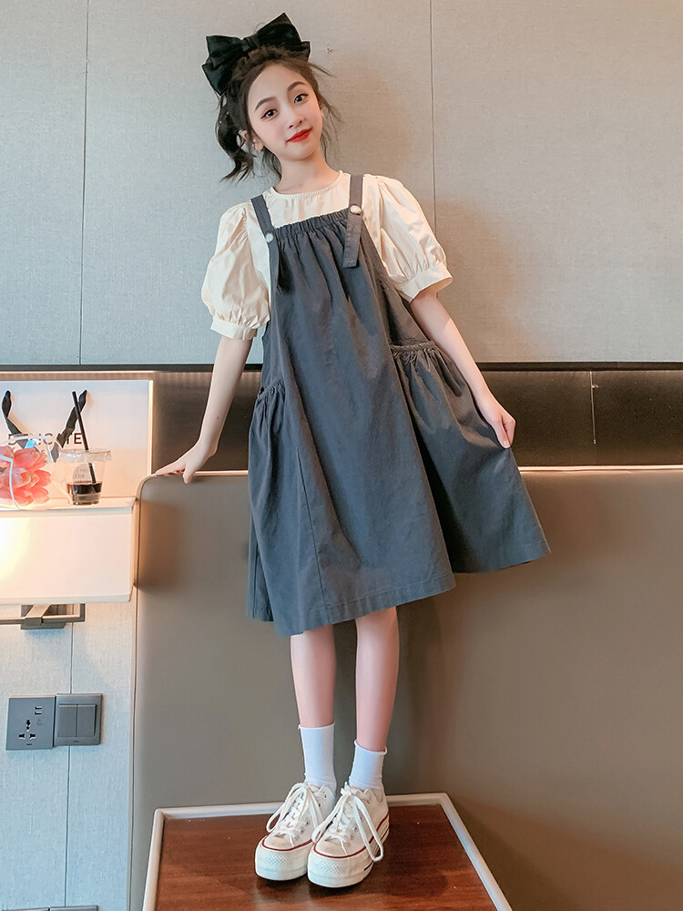 New Style Thin Casual Red Girl Children's Net Summer Dress 2023 Western Style Girl's dress suit Summer Skirt