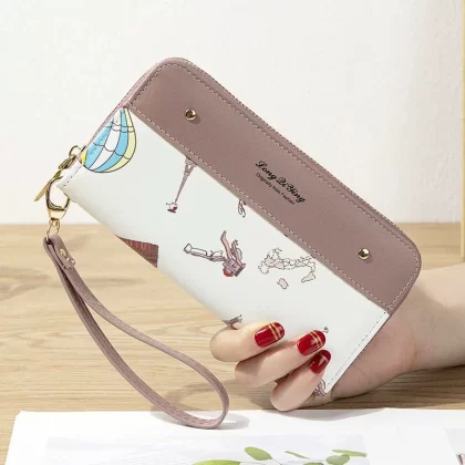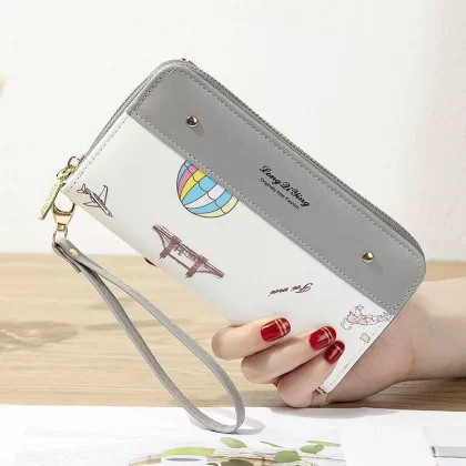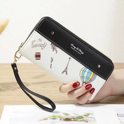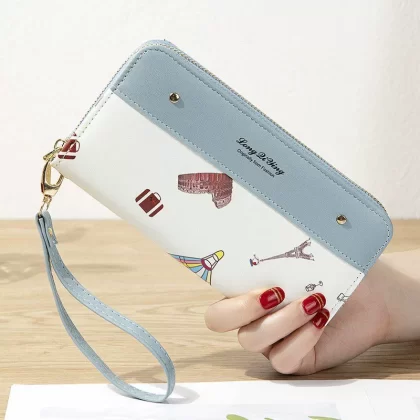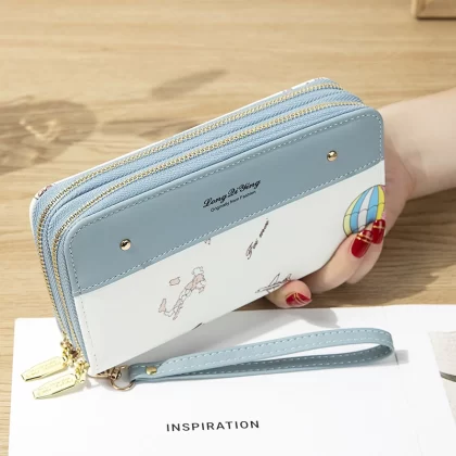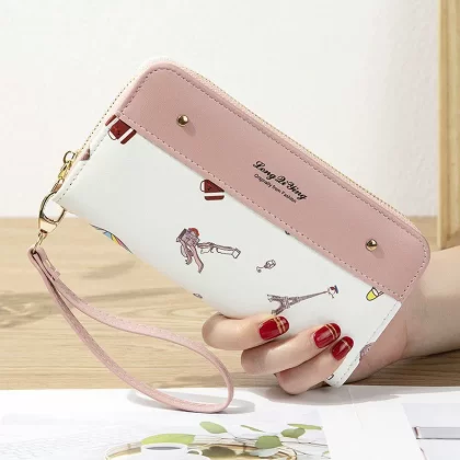 محفظة نسائية طويلة بتصميم جديد بسحاب مزدوج حقيبة للهاتف المحمول محفظة للطلاب ببرشام ذات سعة كبيرة وحقيبة يد ناعمة ومحفظة للعملات المعدنية
