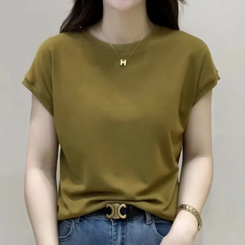 New Summer Small Flying Sleeves Ins Style All-match Slim-fit Round Neck Short Sleeves Solid Color Design Sense Niche Top Bat Sleeves