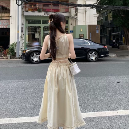 تنورة طويلة بشرابة على طراز العطلة الصيفية الجديدة مع أشرطة رقبة رسن