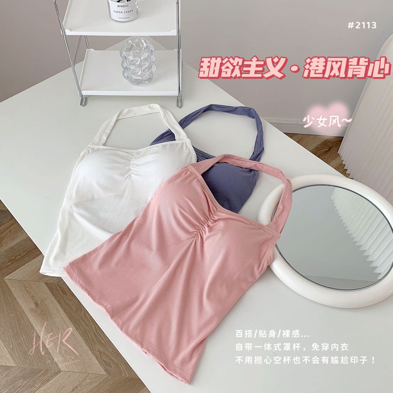 New Sweet Desire Small Vest Beautiful Back New Hanging Neck Beautiful Back Tube Top Hong Kong Style Chest Wrapped Girls' No Steel Ring Base Underwear