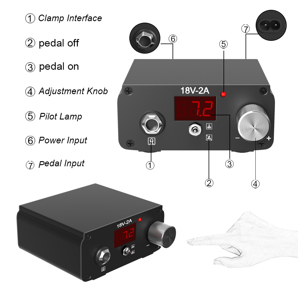 | nameOriginal | New tattoo embroidery power supply pedal integrated with display hand dial power supply pedal-free tattoo power supply tool tattoo equipment |