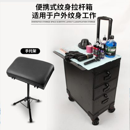 New Tattoo Toolbox Trolley Case with Hand Bracket Storage Box Easy to Carry Tattoo Auxiliary Tools on Wheels
