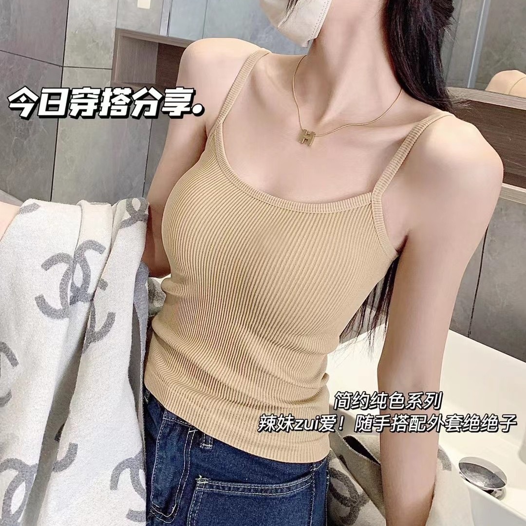 New Threaded Camisole Women's Non-rimmed Push-up with Chest Pad Outer Wear Top Comfortable All-match Underwear Base Shirt