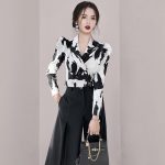 | nameOriginal | New Two-Piece Set 2024 Spring Korean Style Slim-Fit Printed Suit Jacket Tight Waist Fashionable Wide Leg Pants Set |