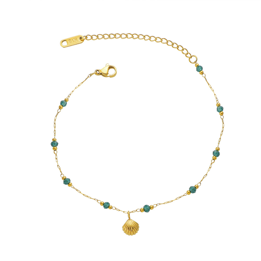 | nameOriginal | New vintage green stone shell anklet plated 18K gold titanium steel explosion new Chinese light luxury high sense gift anklet |