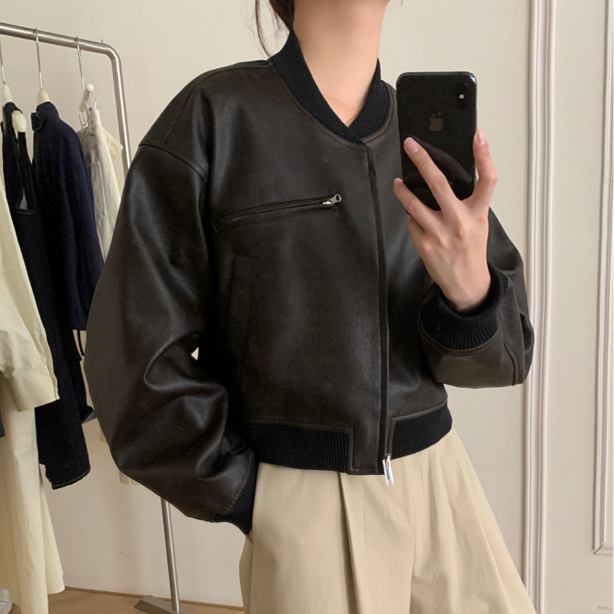 | nameOriginal | New vision Maillard women's autumn short handsome PU jacket flying jacket |