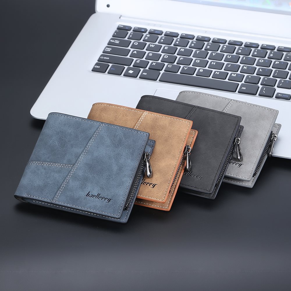 محفظة رجالية جديدة قصيرة ريترو متعددة الوظائف بسحاب للعملات المعدنية، محفظة ناعمة كاجوال متعددة البطاقات للطلاب