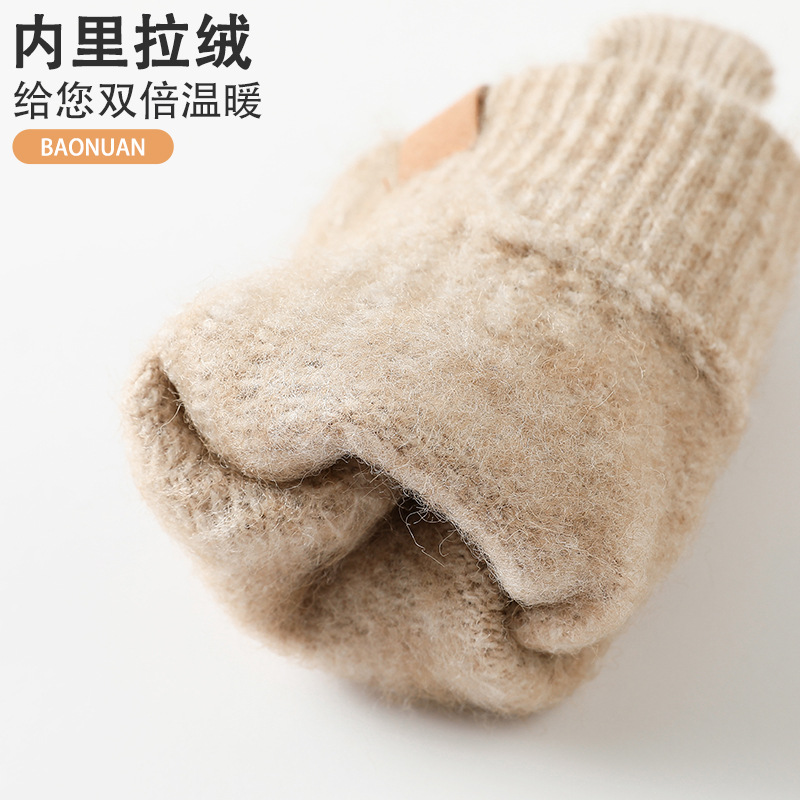 New Winter fleece-lined Thickened Warm Knitted Gloves Women's Alpaca Fit Soft Outdoor Touch Screen Gloves Manufacturers
